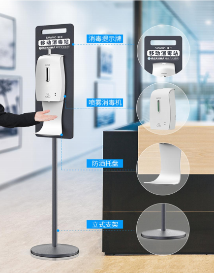 瑞沃考虑到公共场所出入人流量大、人员来源复杂、密切接触可能性较大等特点,创新推出“集测温消毒功能于一体”的移动消毒站,助力防疫战斗。测温版移动消毒站采用红外感应技术,实现自主测温、免接触出液,帮助公众快捷完成体温检测和手部消毒工作,化身民众安全的守护者,受到了许多公众的喜爱。